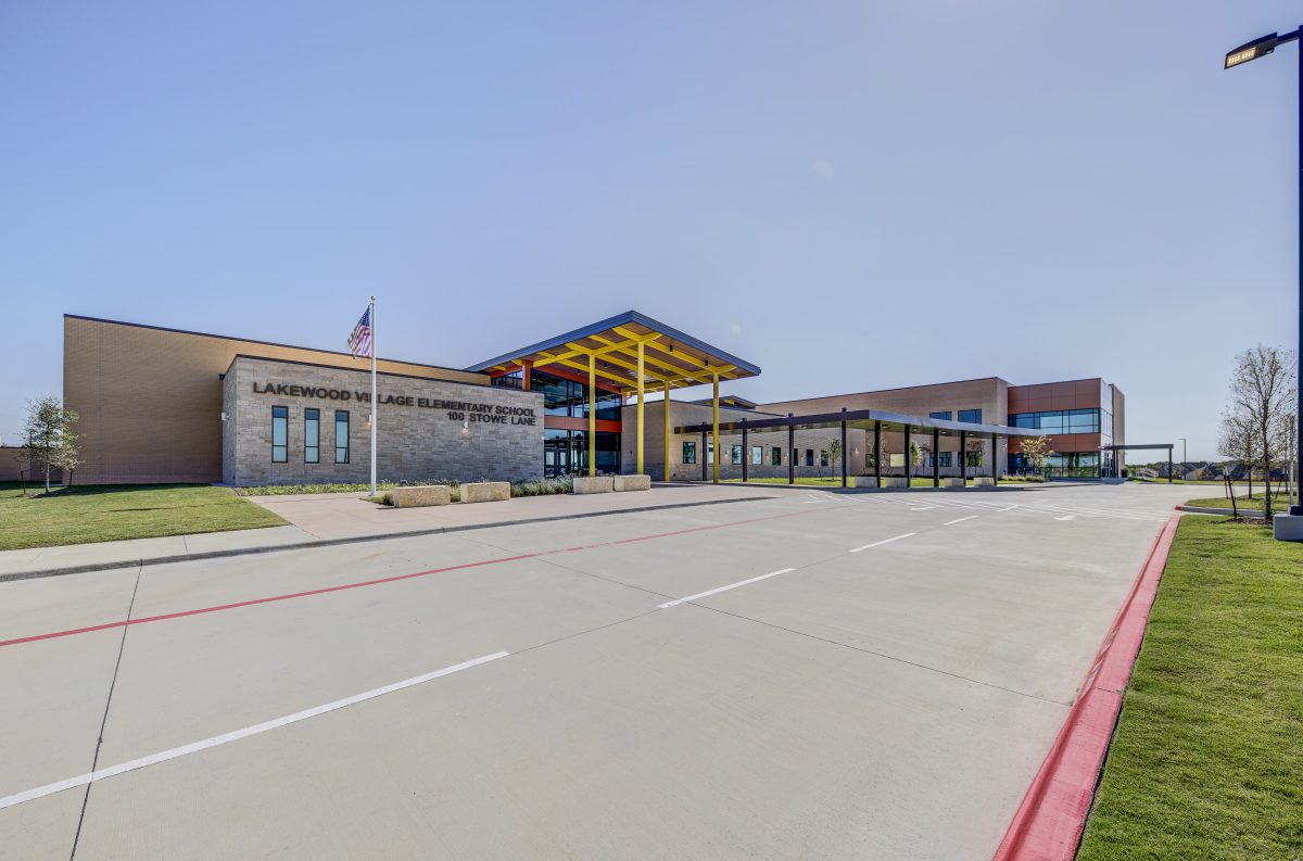 This new 95,000 SF ground-up school is primarily a single-story facility with one two-story wing. The design incorporates a stage, cafeteria, library, and a gymnasium that also functions as a storm shelter. At the heart of the campus is a distinctive central courtyard, while the second floor of Wings E and F includes a dedicated STEM classroom and collaborative study spaces. Outdoor amenities feature both a basketball court and an open sports field, providing flexible areas for recreation and athletics.